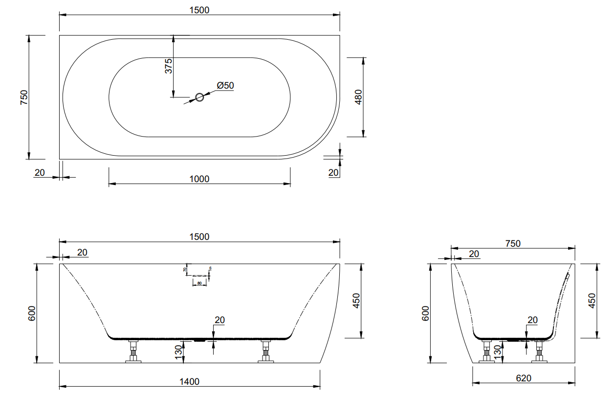 Versa MK2 1500mm White LH Multi Fit Corner With Overflow BTW Freestanding Bath